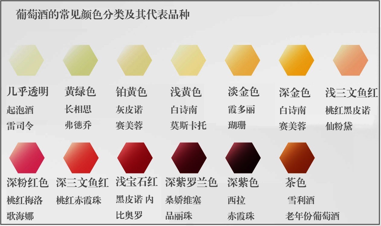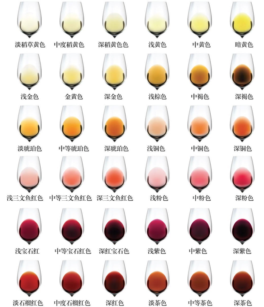虽然我们不能仅仅凭借葡萄酒的颜色来确定这款酒的颜色、年份、品种,但是还是可以在宏观上对这款酒有一个大致的猜测,尤其是在盲品中,简单的一眼就可以排除许多的干扰信息。下面小编就给大家列举一下葡萄酒常出现的颜色,以及出现这些颜色的原因。