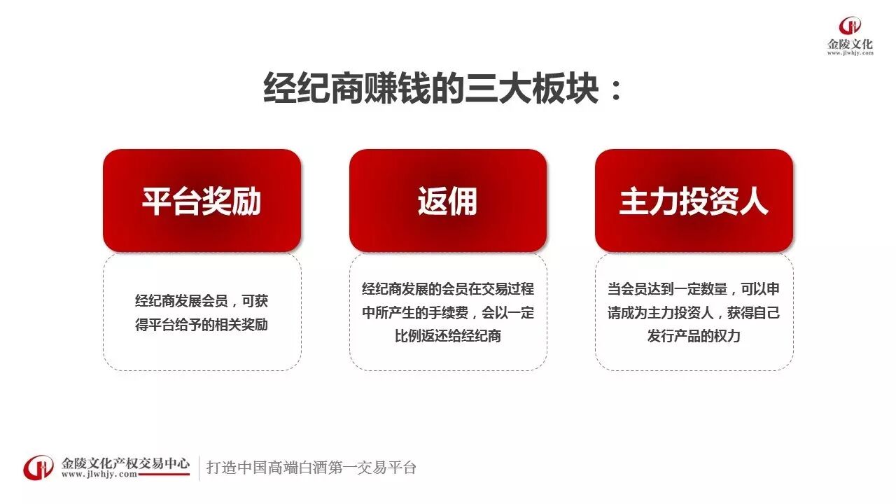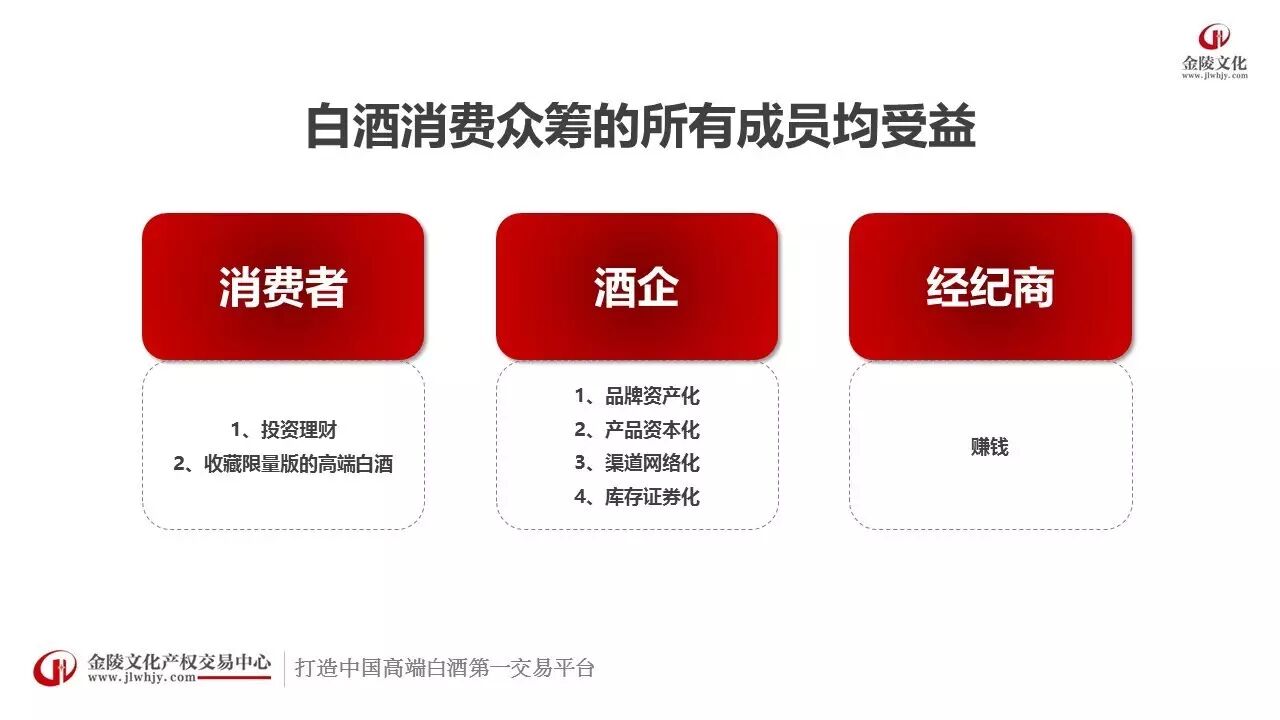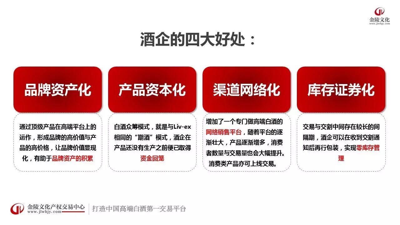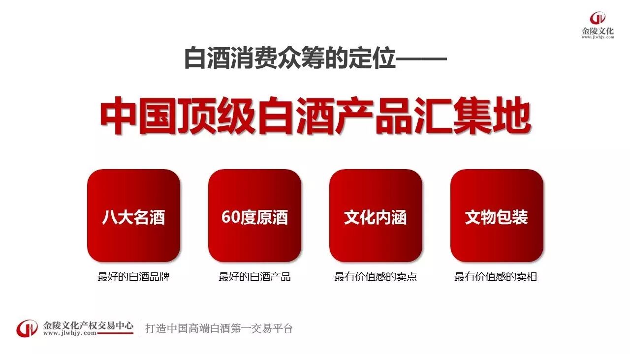 据了解,这个生态圈由大隆汇链接新老八大名酒、文化产权交易机构、文化白酒经纪商、消费众筹投资人的资源合作形成,项目落户南京金陵文化产权交易中心。